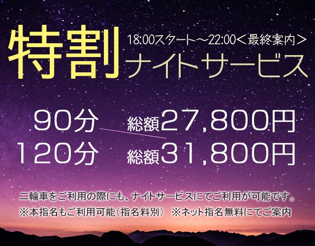 夜のご案内がお得なこの期間に是非ともお楽しみください。